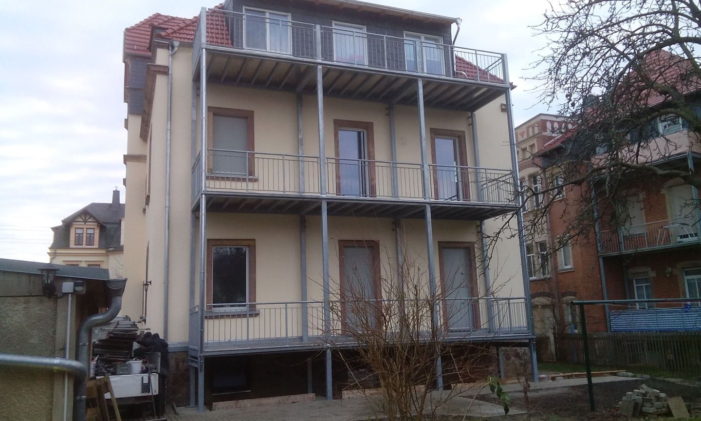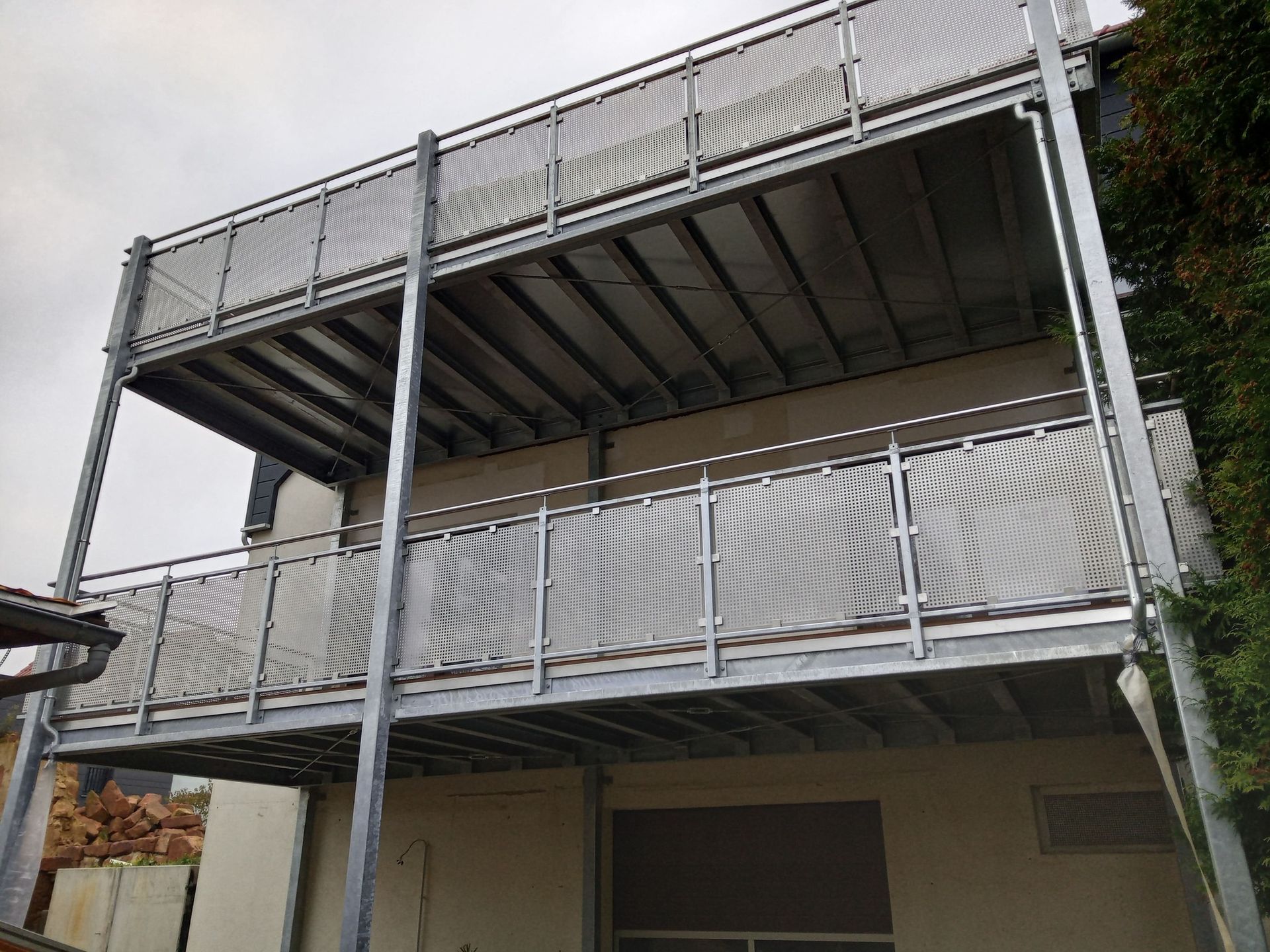 Unser Team berät Sie ebenfalls umfassend zur Planung Ihres Balkons. Wir stellen sowohl Balkonanlagen mit Geländer und passenden Treppen als auch Überdachungen her. Dabei arbeiten wir stets mit hochwertigen und langlebigen Materialien aus Stahl und Metall.