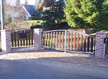 Auch rund um Ihr Grundstück sind wir Ihr kompetenter Ansprechpartner. Wir fertigen Zaunanlagen mit Eingangstoren als Schiebe- oder Drehtor. Auch die Herstellung und Montage von elektrisch betriebenen Toren, Hallentoren sowie Sectional-, Roll-, Falt- und Garagentoren übernehmen wir für Sie. Dabei sind wir von der Beratung über die CAD-Planung bis hin zur Montage für Sie da.